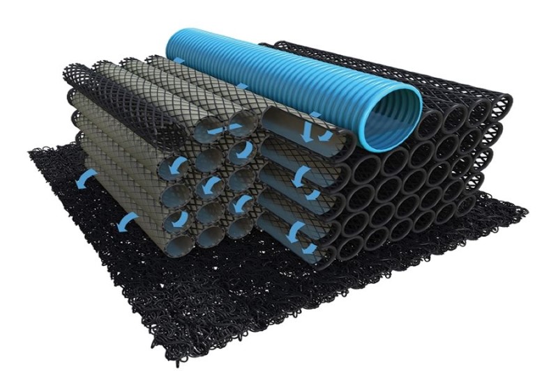 Biomodule is a solution where biological purification of the greywater takes place according to the same principle as in a soil bed or infiltration, but within a tubular support material which is installed in soil. In these tubes, a biofilm is formed consisting of bacteria and fungi that break down infectious agents and organic material and oxidize ammonium to nitrate. Biomodules can be used as a compact soil bed with a layer of sand on which the modules are placed and a sealing layer at the bottom. Discharge then occurs to surface water. An advantage is that it can be built on a smaller surface than a conventional ground bed, approx. 10-15 sq.m. The plant can also be built as an enhanced infiltration, with an infiltration surface under the filter. Properly installed biomodules are generally robust installations that are relatively insensitive to disturbances, and they require very little supervision and maintenance. There may be need to install additional phosphorous filter after the biomodule, to remove phosphorous since phosphorous removal in the biomodule is small.